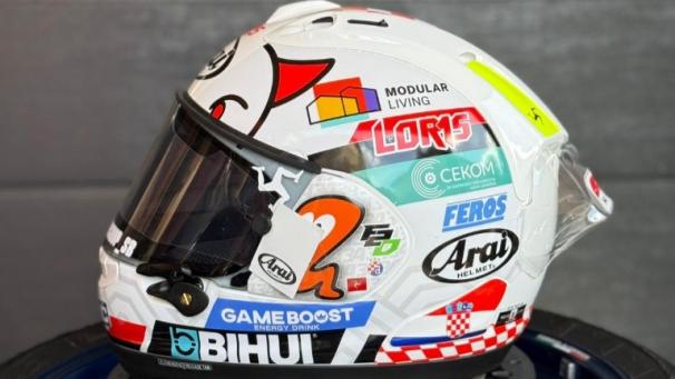 "DONIRAJ 50€ ILI VISE I SUDJELUJ U IZVLACENJU ZA NAGRADU - POTPISANA LORISOVA ARAI RX-7V KACIGA S UTRKE IOMTT 2025"